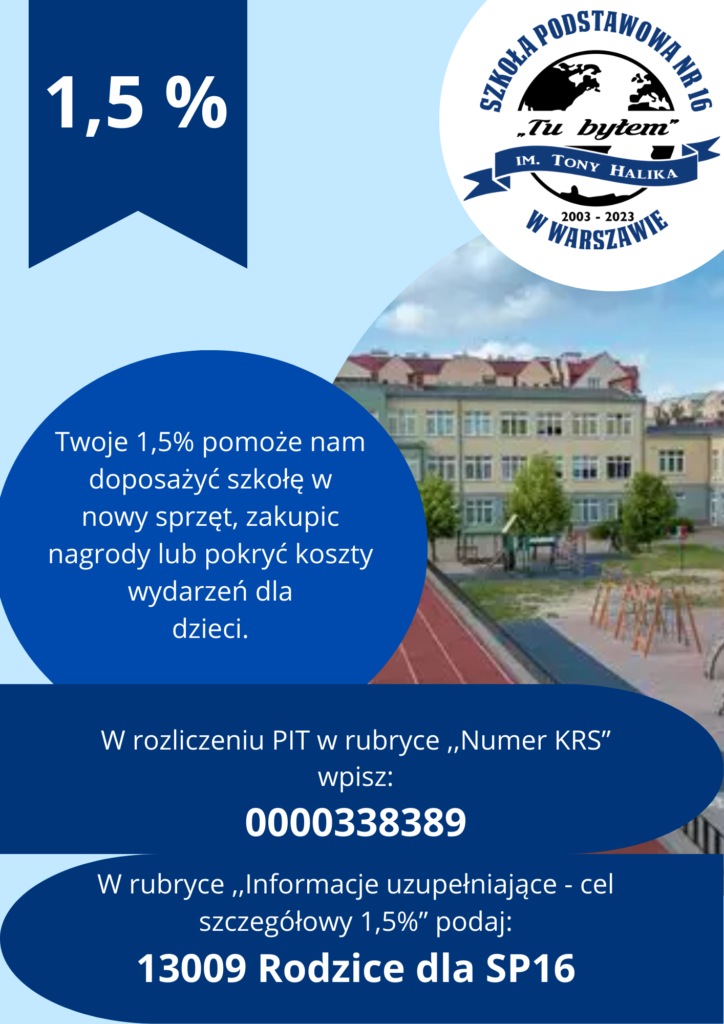 1,5% podatku na rzecz Rady Rodziców SP16